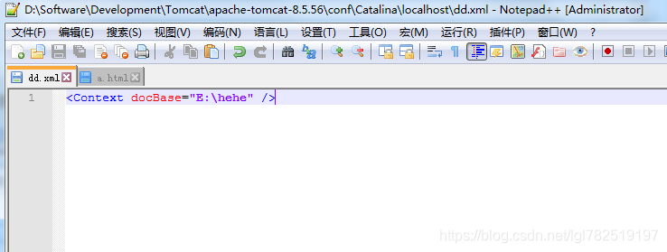 在xml文件加入以下配置:<Context docBase="E:\hehe" />