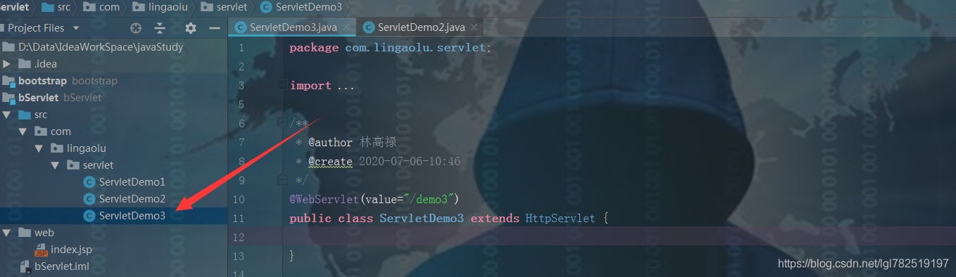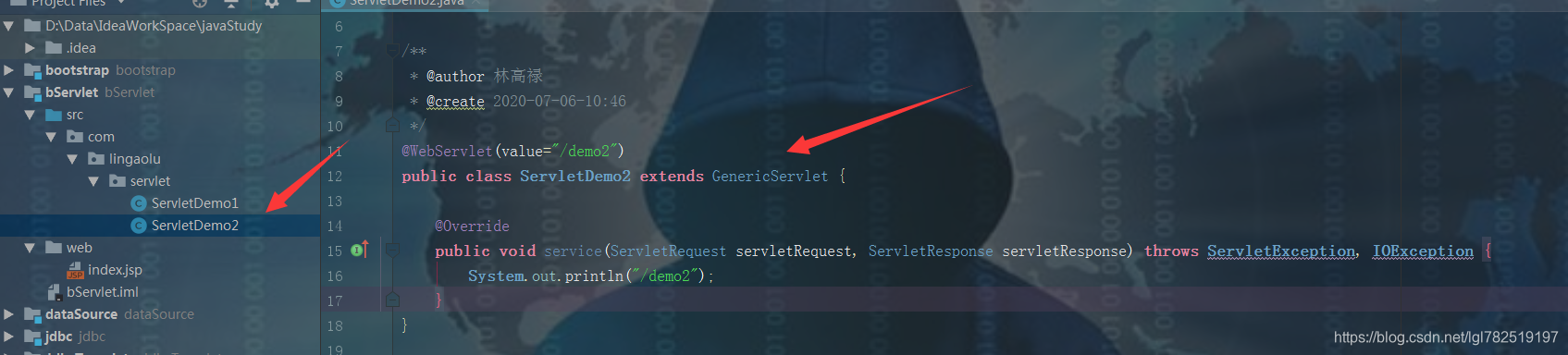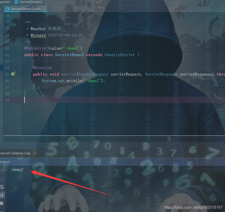 package com.lingaolu.servlet; import javax.servlet.*; import javax.servlet.annotation.WebServlet; import java.io.IOException; /** * @author 林高禄 * @create 2020-07-06-10:46 */ @WebServlet(value="/demo2") public class ServletDemo2 extends GenericServlet { @Override public void service(ServletRequest servletRequest, ServletResponse servletResponse) throws ServletException, IOException { System.out.println("/demo2"); } }运行访问