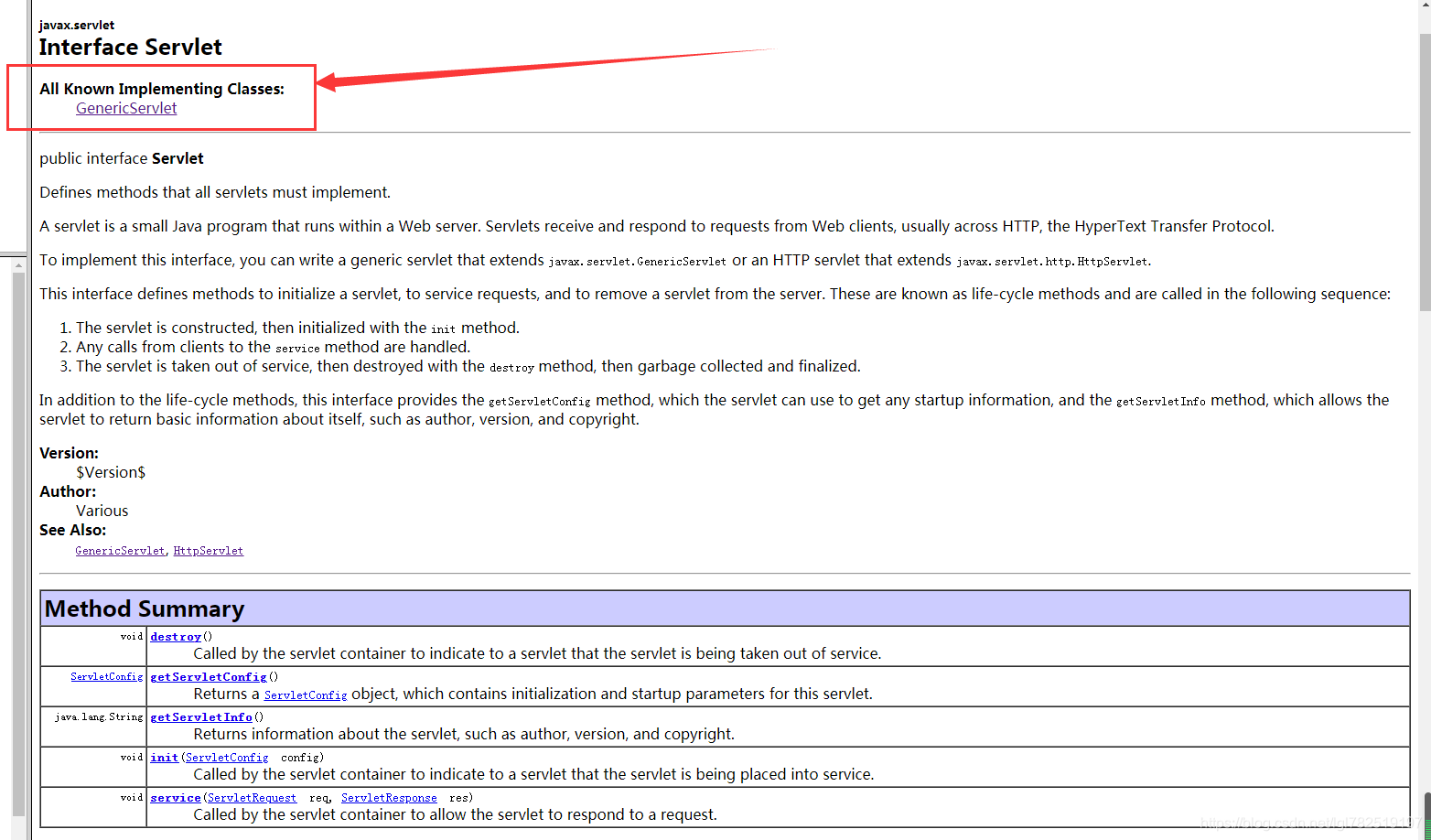 那我们就不实现Servlet接口了,去继承GenericServlet类看一下