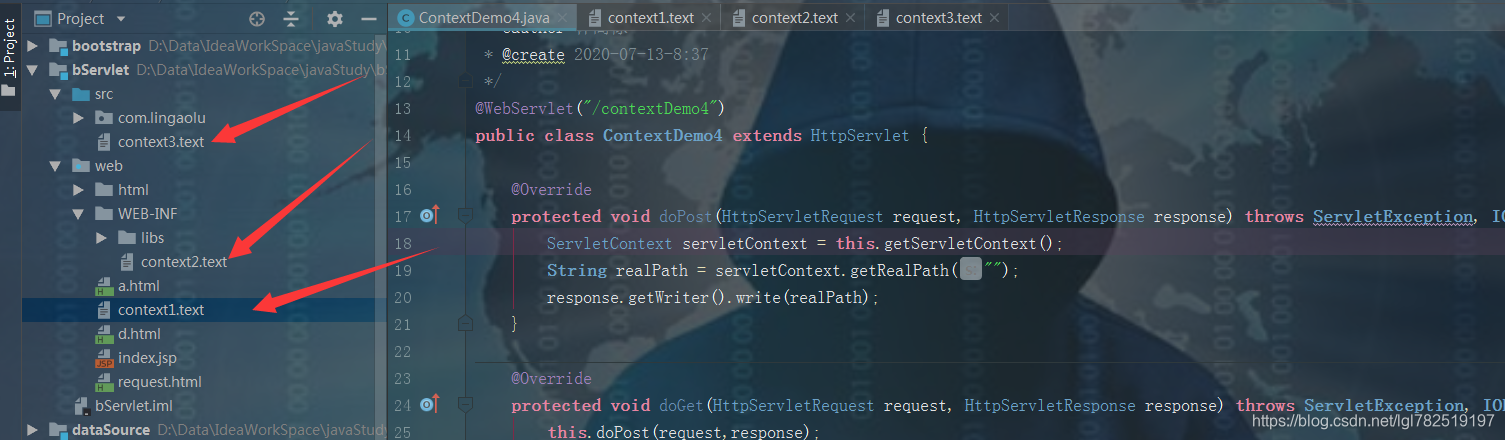 我们先看一下我们项目的真实路径大的根目录是什么,给个空字符串说明访问的是根目录,ContextDemo4代码
