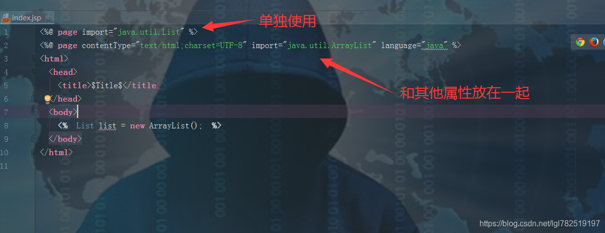 当前页面我们写java代码想使用List集合,如果没有导包就会爆红报错