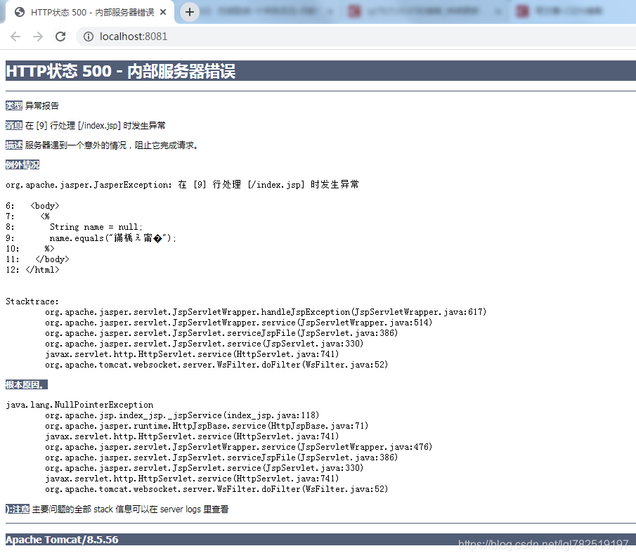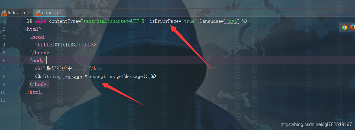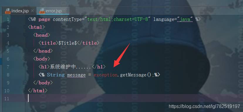 这样访问index.jsp报错的时候,会跳转到error.jsp页面,给用户一个友好的提示