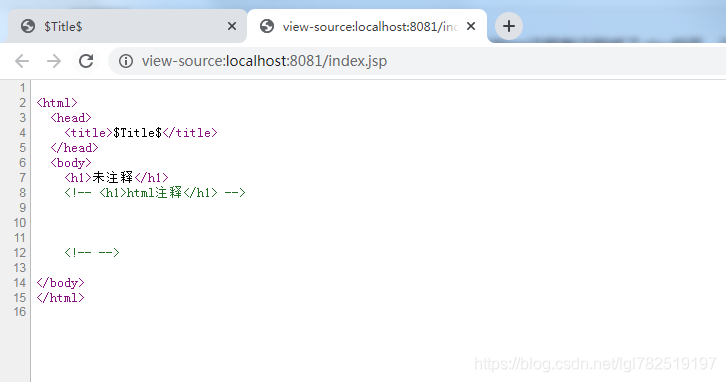 发现jsp注释并没有加入到源码中,而html注释会被加入到源码中
