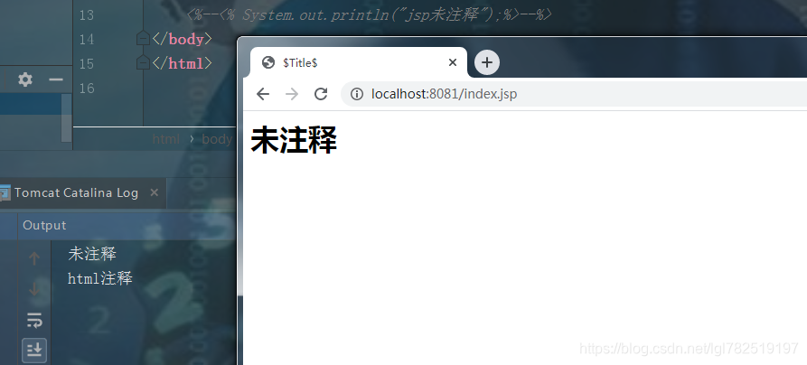 - jsp注释不仅能注释html标签内容,还能注释jsp标签内容。比如jsp注释就注释掉了<hi>标签,还注释掉了<%%>的java代码