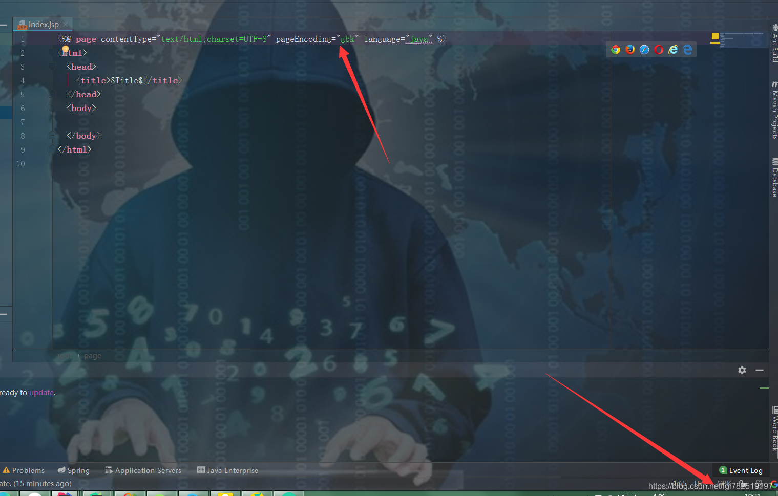 我们设置pageEncoding为GBK后,我们当前页面的编码方式就变为GBK