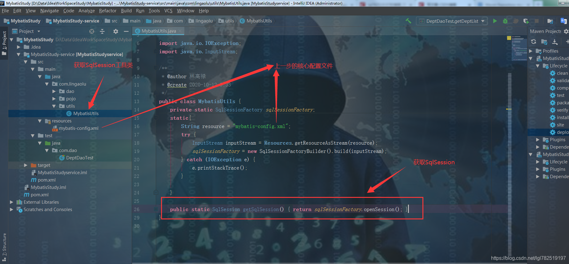 5、获取SqlSession,抽取为MybatisUtils工具类