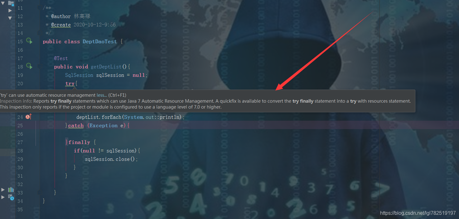 Java 7 引入了try-with-resources语句,简化了资源关闭的过程,避免了忘记关闭资源的问题。资源必须实现Closeable或AutoCloseable接口,例如SqlSession。当try块执行完毕或发生异常时,资源会自动关闭,且关闭顺序与声明顺序相反。这种改进提高了代码的可读性和安全性。
