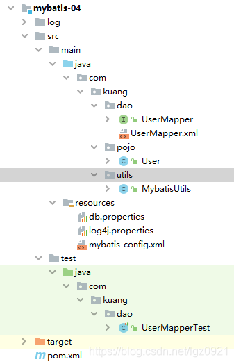 目录结构:其中log文件夹是log4j配置自动生成的。