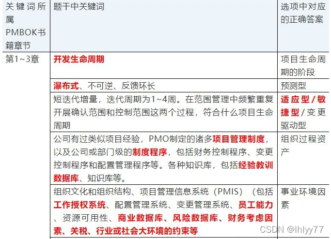 - 相关性法则:考题关联对应的项目管理工具、技术、技能和知识等。