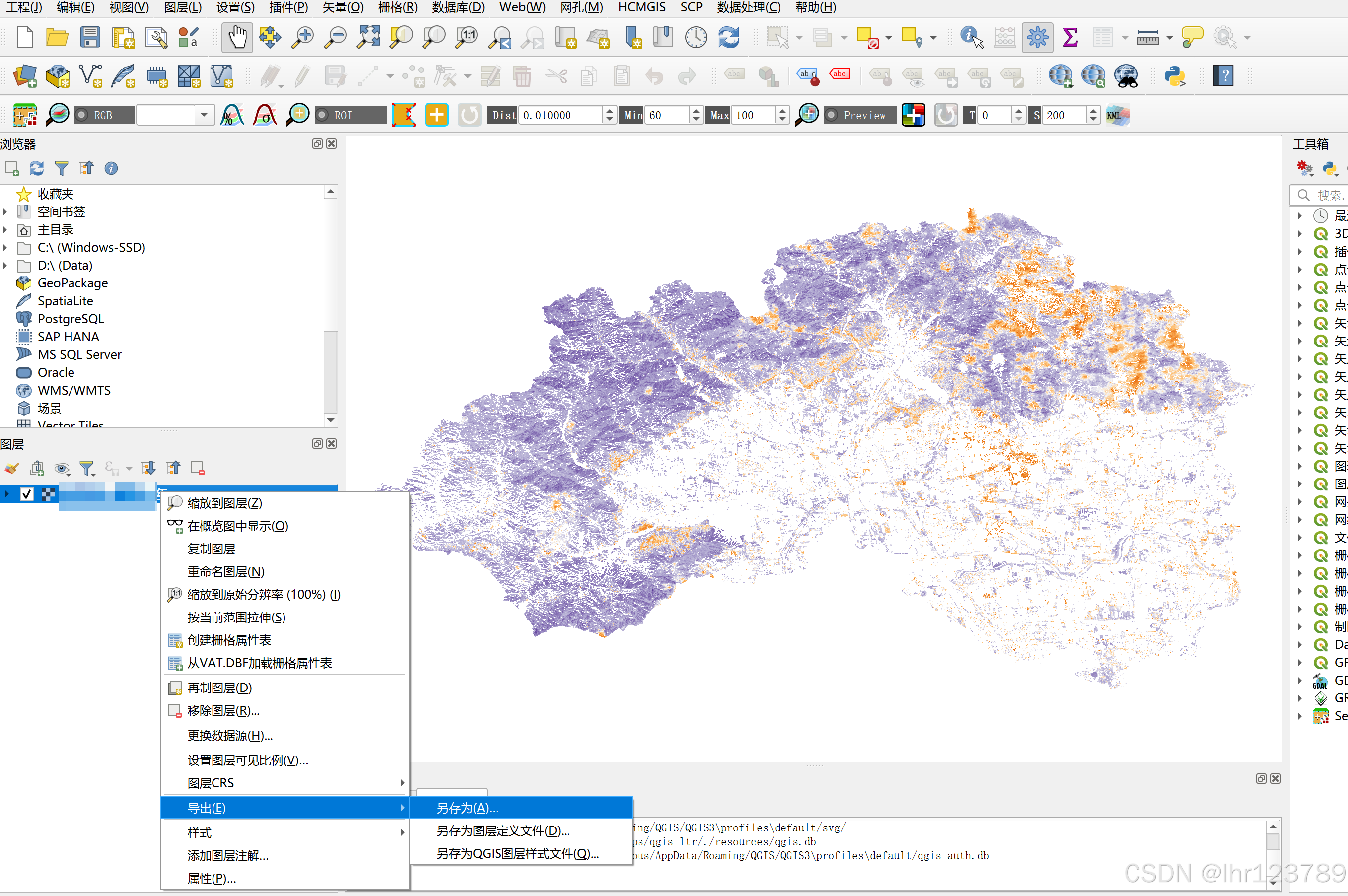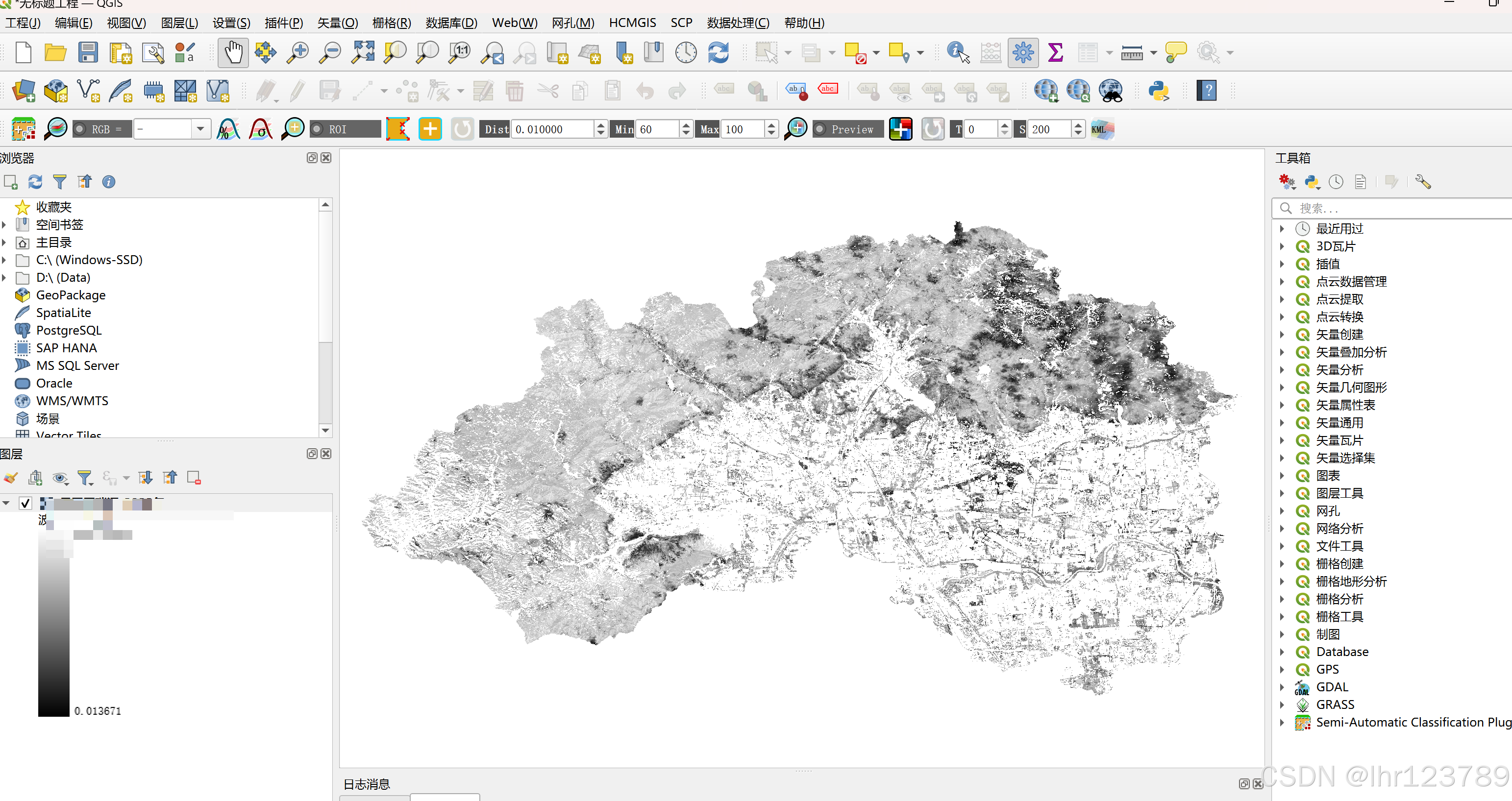 具体问题:有时候需要将TIFF文件在某某平台上面展示,现在手里有黑白TIFF文件,需要上色。这个时候可以用QGIS对TIFF文件上色,保存成带颜色的TIFF文件就可以发布成图层了。平台调用时候就是带颜色的图层了。具体操作如下: