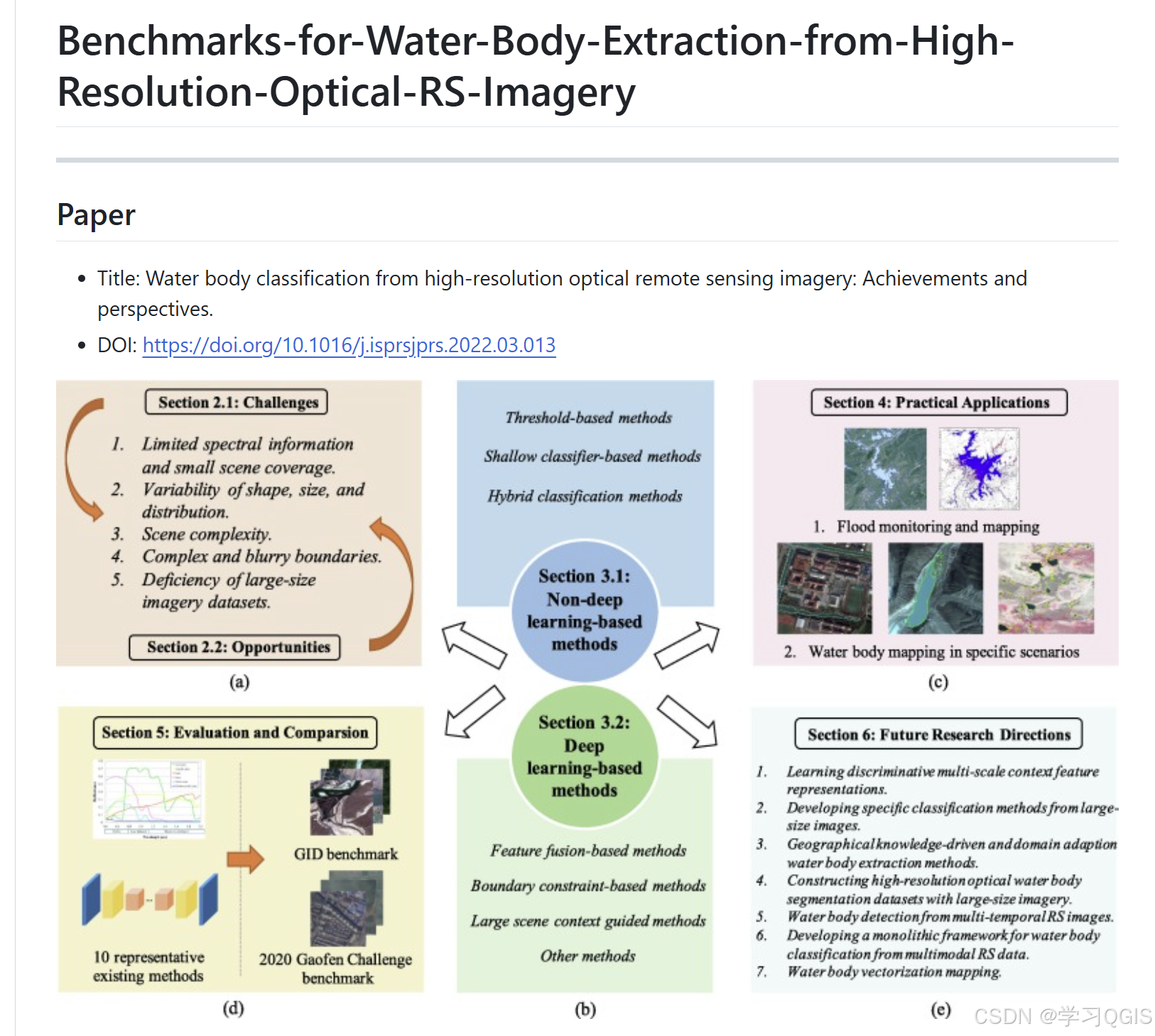 这篇论文里面有关的一些资料,十分全面,武汉大学 Bodang 老师团队发的一篇综述文章,里面涉及的一些研究成果以及相关网页都列在这里了,有一些数据集可以下载。做水体提取项目的同学和朋友们可以看一下,里面找找需要的素材。