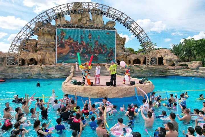 以贝丘文化与美贝熊为故事线,亲子玩水为主题的鹭湖水世界,融合刺激游乐与休闲互动,打造全龄游客的夏日避暑天堂。设有真沙滩造浪池、高速滑道、亲子赶海乐园等十多项水上游乐设施,融合东南亚风情表演等多元体验,从刺激到温馨,从惬意到“躺平”,解锁快乐玩水DNA准备好了吗?