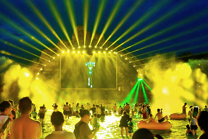 造浪池变身电音派对剧场,巨幕投影与激光穿透夜空,电音节奏与造浪机同步启动,所有人都会一起加入这场水上电音派对,水花与汗水交织成狂欢画面,将清凉与狂热碰撞至极致。
