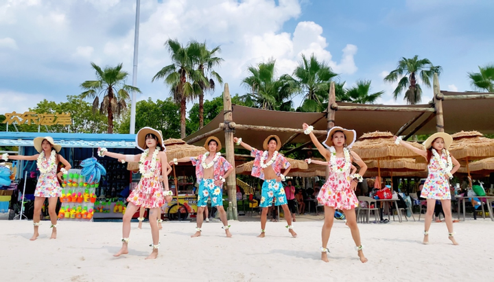 东南亚风情沙滩舞蹈,碎花裙与花衬衫水上热情的节奏中摇曳生姿~水花与笑声交织成治愈系体验,让夏日清凉在动态互动中更具感染力。