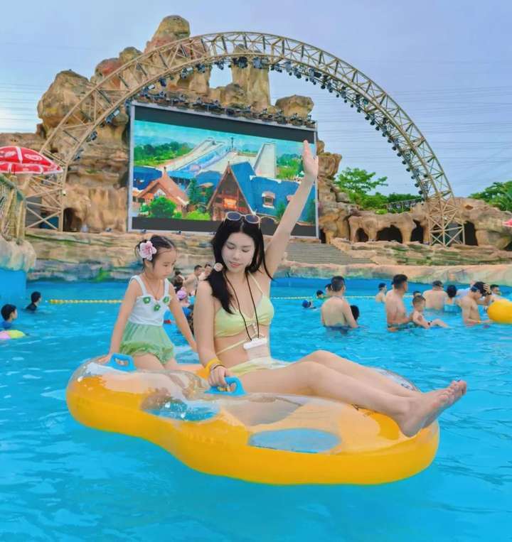 白天造浪池上演“泼水大战”,凉爽水花与欢笑声此起彼伏,与正在玩着疯狂大喇叭的尖叫声共同点燃夏日~可以租上双人浮圈和身边的人随波漂浮,38℃的夏天在互动中变得清凉而充满活力~