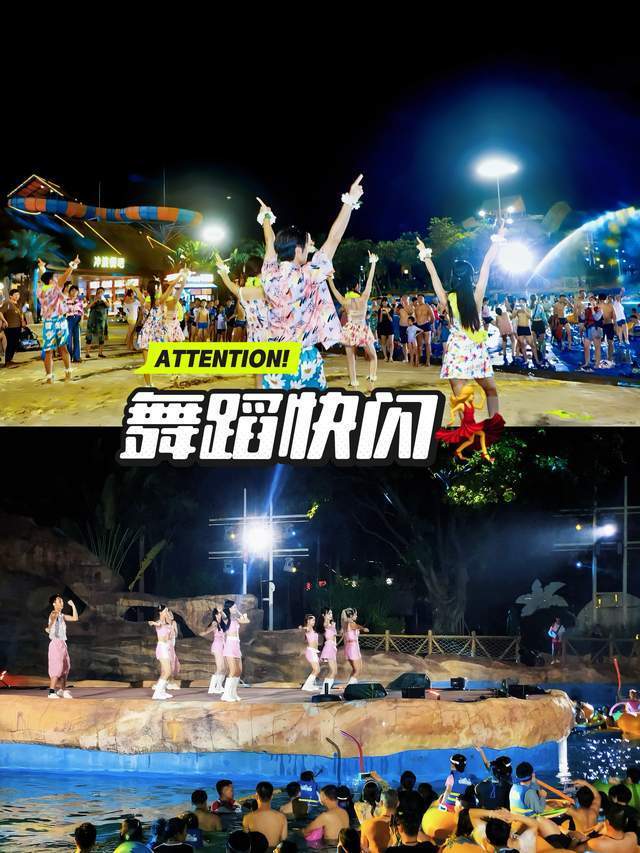 【演艺+游玩动线】16:30入园:先冲沙滩区看舞蹈快闪,参加浪池派对,边吃烤肠边围观~17:00-19:30 错峰玩疯狂大喇叭、高速滑道、巨兽碗等十几项肾上腺素飙升感满满的项目多多