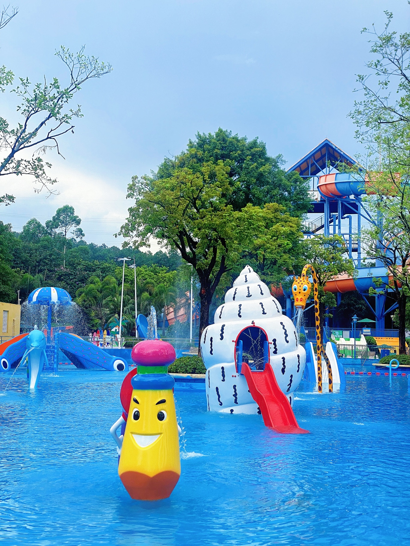 儿童戏水池还配备多种可爱造型的水上滑梯,孩子们可以从滑梯上快速滑下,一头扎进清凉水中,体验滑行的乐趣。这里鼓励孩子们结交新朋友,组队打水仗或玩游戏,尽情释放活力与童真。