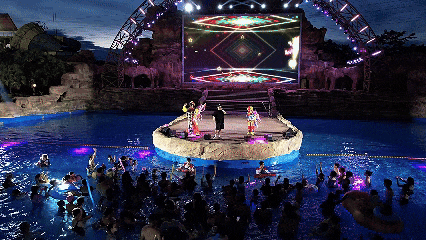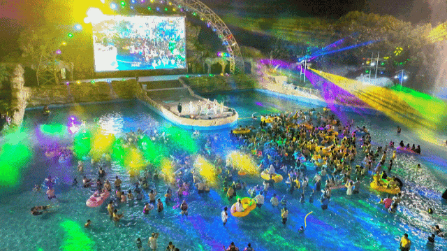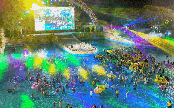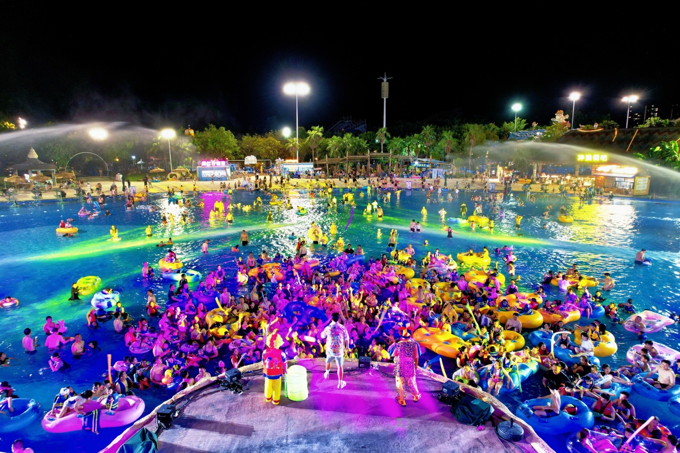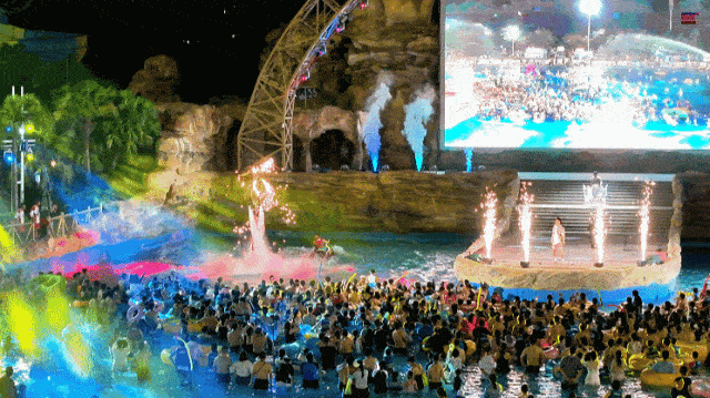 当动感音乐响起时,真沙滩造浪池会变身为水上狂欢派对现场,DJ现场打碟,炫酷灯光交织闪烁,营造出热烈氛围。游客们随着音乐节奏舞动,在浪花中尽情欢唱,在欢乐的海洋中尽情释放。