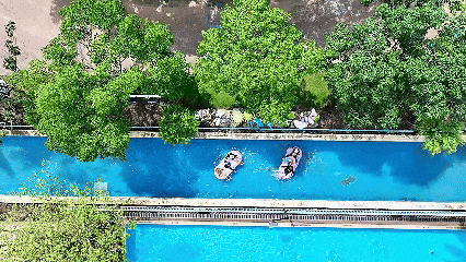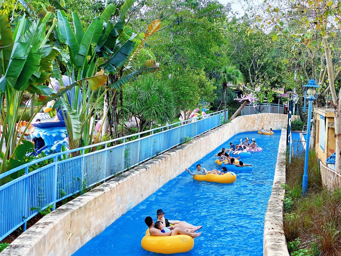 玩累了刺激的项目,不妨来到悠闲漂流河,开启一场悠然自得的水上之旅。坐上舒适的泳圈,缓缓地随着河水飘荡。
