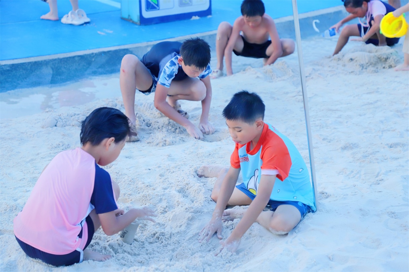 家长可以在旁边的休息区安心休憩,一边观看孩子们欢乐玩耍,一边享受轻松愉快的亲子时光。环境安全舒适,地面防滑处理得当,确保所有活动在低风险下进行。戏水池出现让家庭出游有了更多的选择,也是亲子夏日避暑的理想场所。