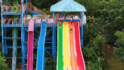 下滑的过程中,风在耳边呼啸而过,身体与水流快速摩擦,速度越来越快,那种风驰电掣的感觉,仿佛自己化身成了“水箭”。在滑行过程中,多次的加速、急转弯带来了接连不断的惊喜,每一秒都充满了刺激与挑战,伴随着此起彼伏的尖叫声,充分体验肾上腺素飙升的快感。如果你是速度与激情的忠实爱好者,彩虹滑梯必将成为你挑战自我的绝佳选择。