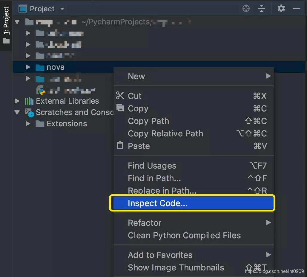你只需要像下面这样点击项目文件夹,然后右键,选择 Inspect Code,就可以开启静态检查。