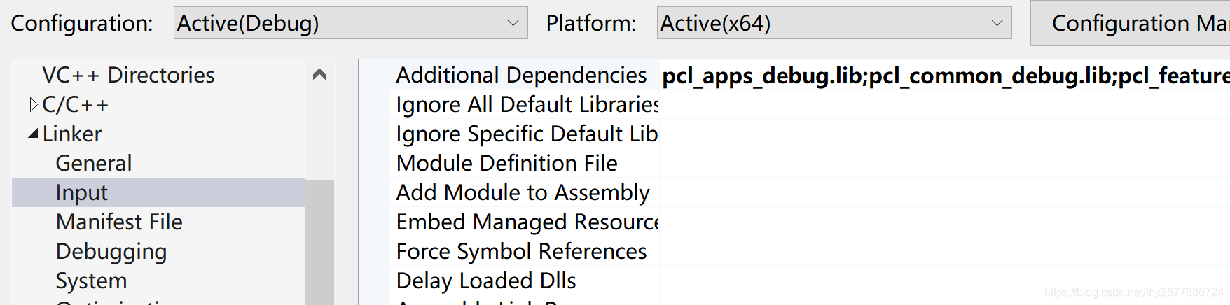 输入以下内容,以下库文件为debug64位的附加依赖项: