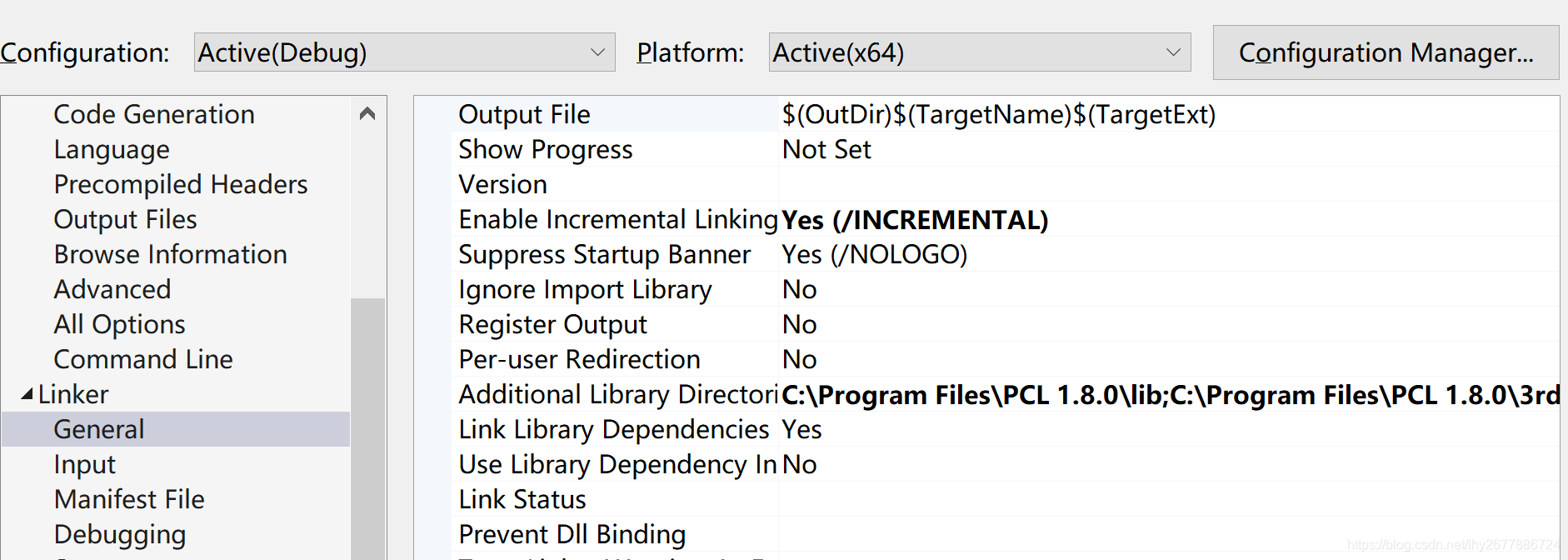 3.在链接器的常规中设置附加库目录,包含pcl和第三方库的lib文件路径。