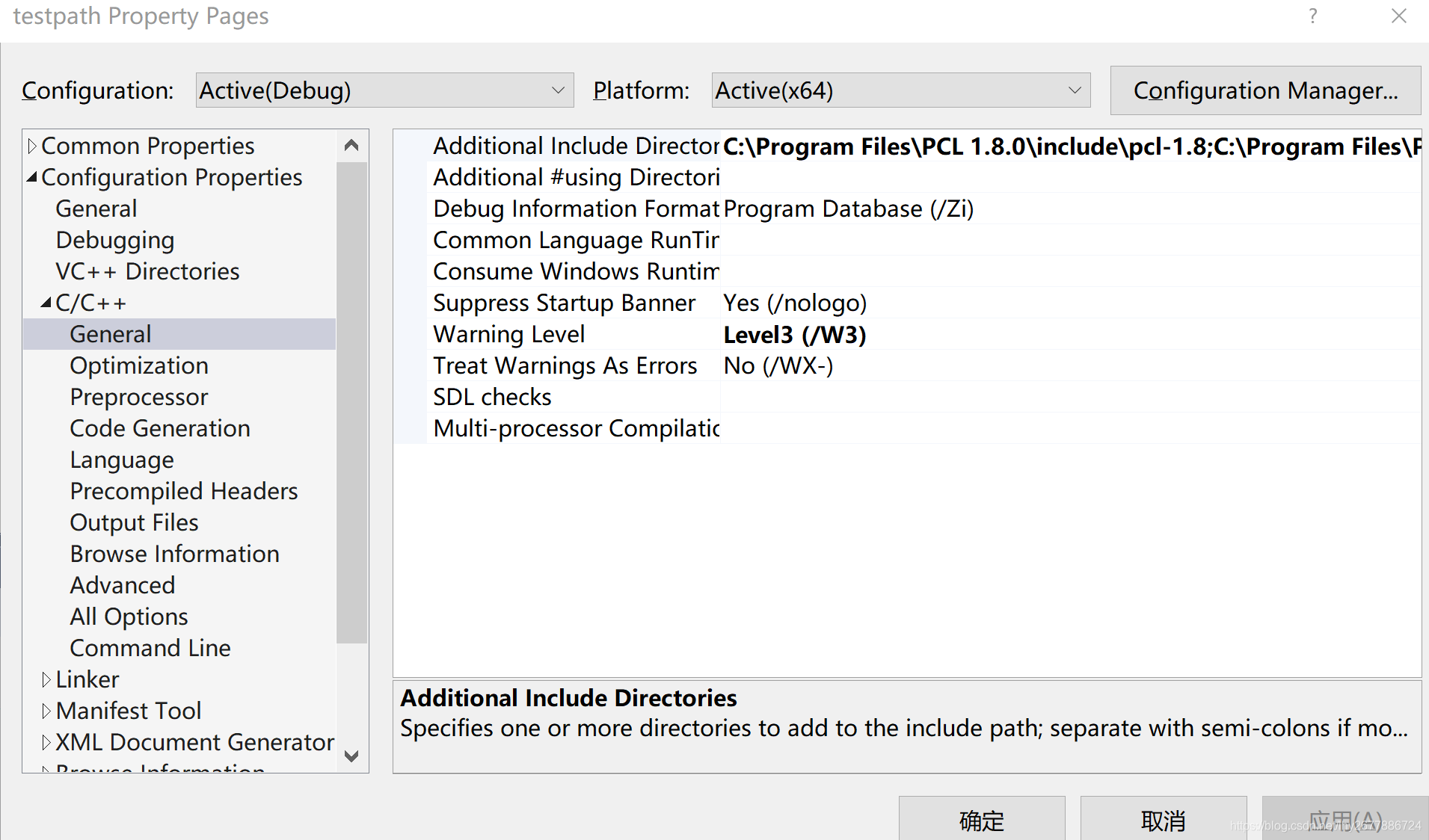 目录路径要根据自己的pcl安装路径做改变,这里是我自己的安装路径。