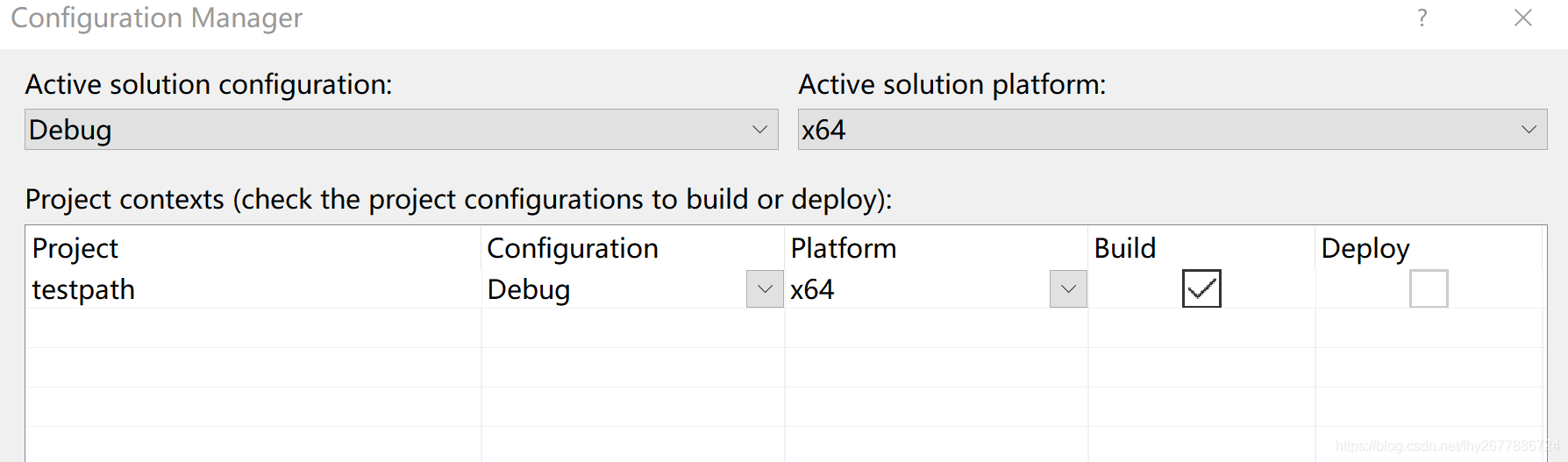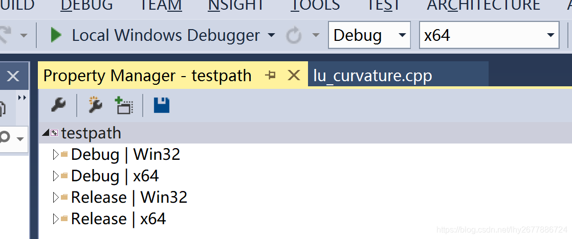 我们需要生成64位的程序,要将默认的win32改为x64,点击下拉框的配置管理器,新建或编辑新的解决方案平台;