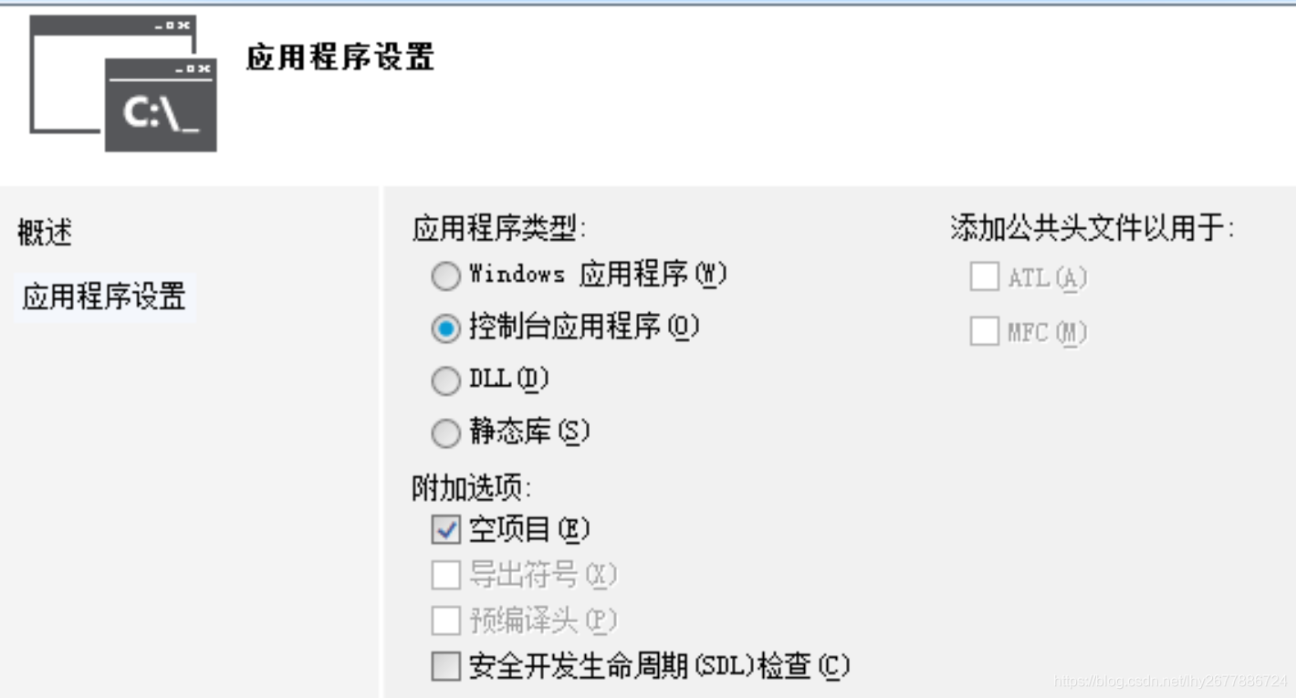 打开vs2013新建一个c++控制台程序,选择空项目,去掉“预编译头(P)”前的勾,去掉“安全开发生命周期(SDL)检查(C)”前的勾,其它默认即可。