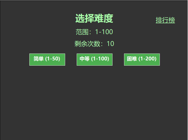 排行榜(leaderboard)用于保存历史最佳成绩前五名(猜测次数越少排名越高)。