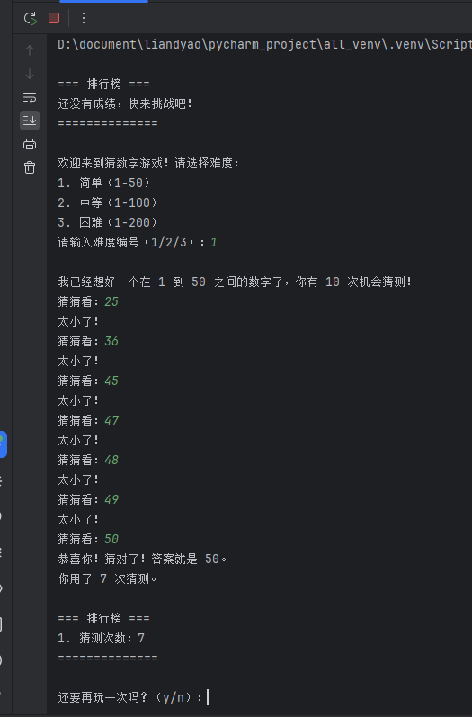leaderboard.append(game_state["attempts"]) # 将尝试次数添加到排行榜