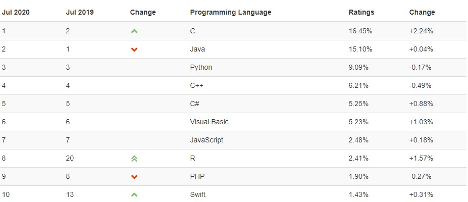 最近,TIOBE更新了7月的编程语言榜单,常年霸榜的C、Java和Python依然蝉联前三位。万万没想到的是,R语言居然冲到了第八位,创下了史上最佳记录。而且后续随着业内对数据统计和挖掘需求的上涨,R语言热度颇有些势不可挡的架势。