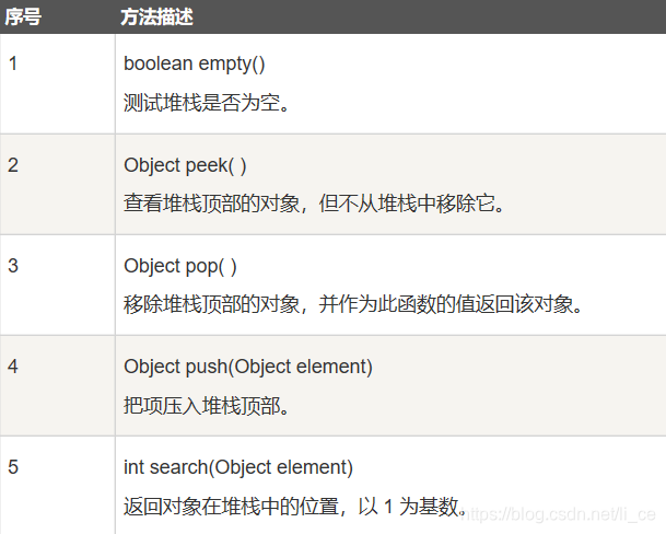 栈是Vector的一个子类,它实现了一个标准的后进先出的栈。