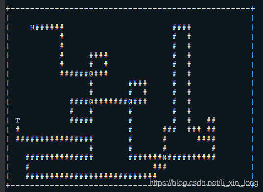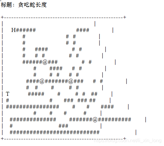 其中,H表示蛇头,T表示蛇尾。#表示蛇的身体,@表示身体交叉重叠的地方。