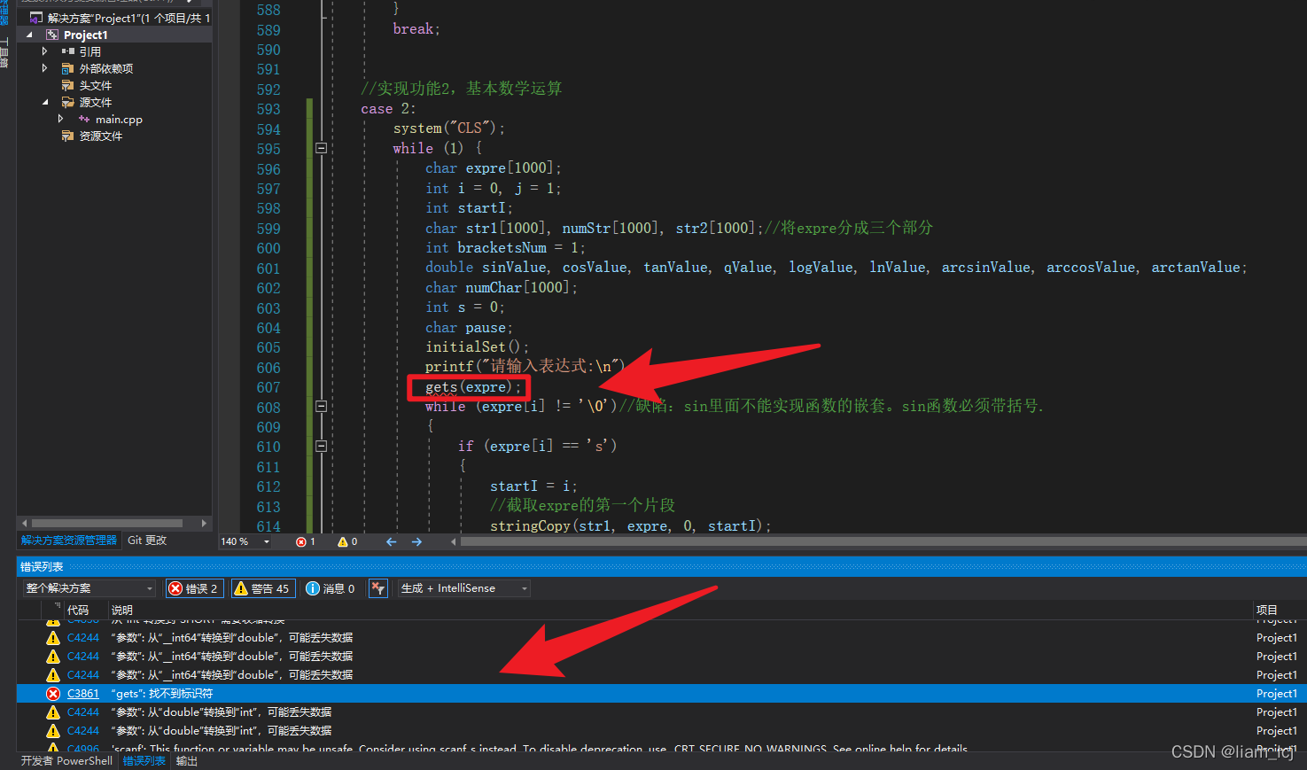 本文讲述了在使用科学计算器开发过程中遇到gets()函数未定义的问题,通过引入标准库中gets_s()函数来修复,并介绍了相关头文件的正确引用。