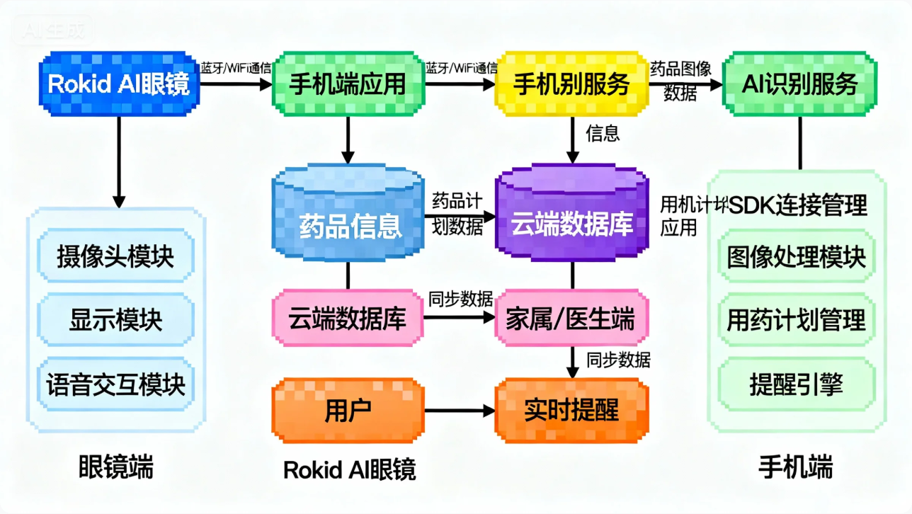本文详细阐述了一种基于Rokid CXR-M SDK开发的智能药品识别与用量提醒系统。该系统通过AI眼镜的实时视觉识别能力,结合移动端应用,实现了药品自动识别、用药指导生成、个性化提醒设置以及用药记录同步等核心功能。文章从系统架构设计入手,深入剖析了SDK各模块的集成应用,包括蓝牙/WiFi连接管理、图像采集处理、AI场景定制、数据同步等关键技术点,并提供了完整的代码实现和性能优化方案。本系统有效解决了老年人及慢性病患者用药依从性差的问题,为智慧医疗领域提供了创新的技术解决方案。