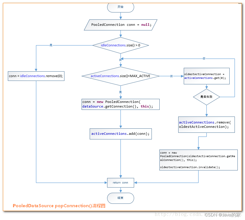 从上述代码可以看到,当我们使用了pooledDataSource.getConnection()返回的Connection对象的close()方法时,不会调用真正Connection的close()方法,而是将此Connection对象放到连接池中。