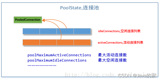 MyBatis的PooledDataSource的PoolState内部维护的对象是PooledConnection类型的对象,而PooledConnection则是对真正的数据库连接java.sql.Connection实例对象的包裹器。