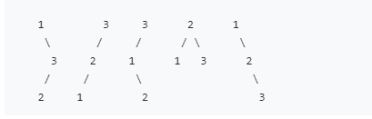 The above output corresponds to the 5 unique BST's shown below: