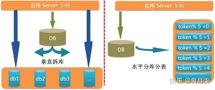 DB拆分在整个应用拆分环节里最复杂,分为垂直拆分和水平拆分两种场景,我们都遇到了。垂直拆分是将库里的各个表拆分到合适的数据库中。比如一个库中既有消息表,又有人员组织结构表,那么将这两个表拆分到独立的数据库中更合适。水平拆分:以消息表为例好了,单表突破了千万行记录,查询效率较低,这时候就要将其分库分表。