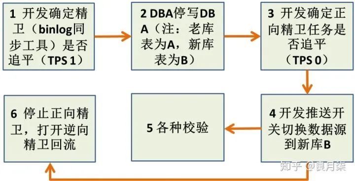 以上步骤准备完成后,就开始进入真正的切库环节,这里提供两种方案,我们在不同的场景下都有使用。a)DB停写方案