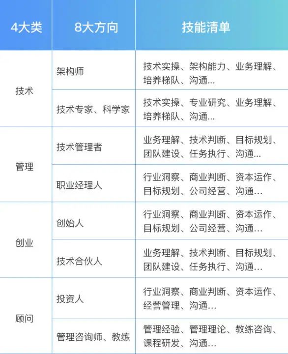 在业务型公司,技术本身没有直接价值,也不具备太高壁垒,很多人都能替代你的位置,个人价值会被稀释。这时,管理岗的优势就体现出来了——管理注重的是集体价值的实现,适用于大部分公司的发展需求。