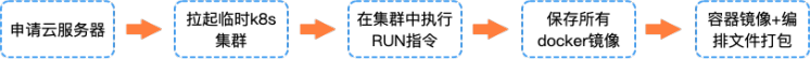 如上图所示,这样就可以保证用户依赖的所有镜像都被打包进去,无论用户使用什么样的编排方式。