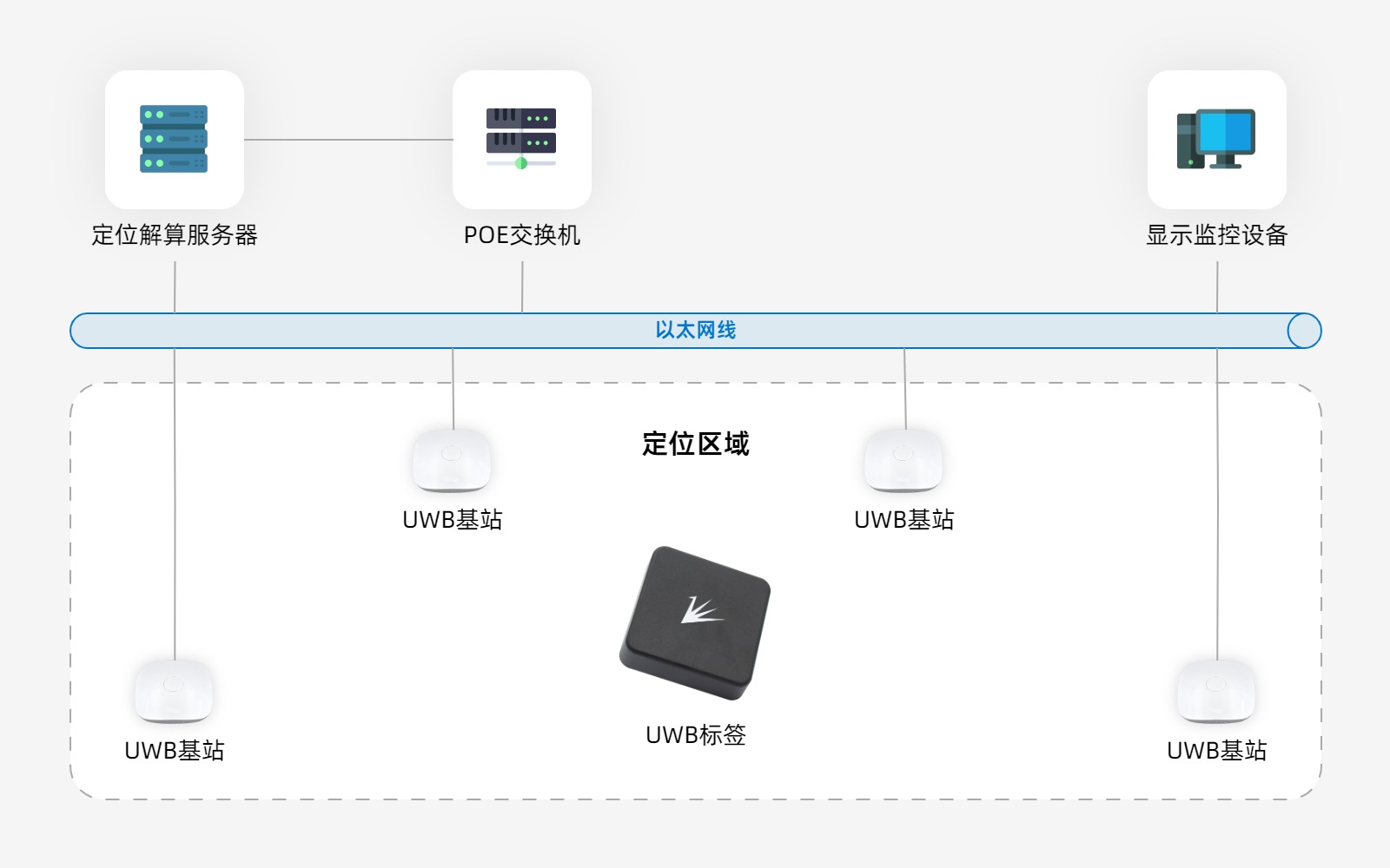 供电方式为POE供电或者DC供电。只需将定位数据 通过网口/WIFI上传至飞易云或者上位机,即可实现实时定位