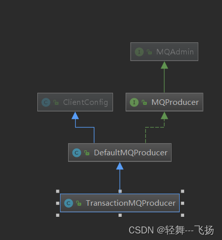 继承自MQProducer,此接口定义了一系列发送消息的方法,最终网络通信会交给MQClientAPIImpl处理。