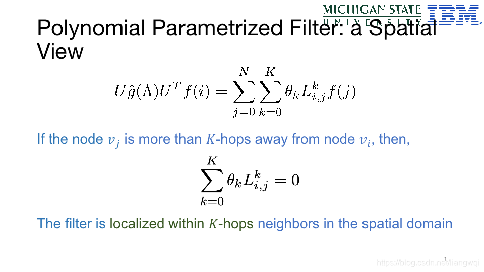 多项式过滤在空域视角,相当于空域中K(K——hops)个邻居函数作用