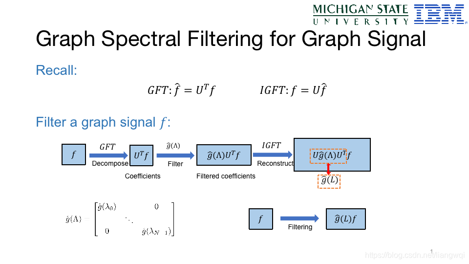 通过多项式拟合特征根分解,对图数据做矩阵二项式相乘等价域图数据做傅立叶分解—— filter——逆傅立叶分解恢复图数据操作