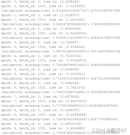 print("epoch: {}, batch_id: {}, loss is: {}".format(epoch, batch_id, loss.numpy()))